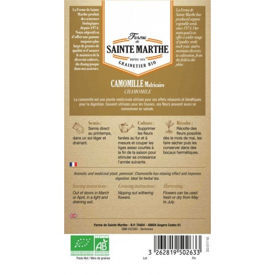 Camomille Matriciaire AB, utilisée comme aromathe mais aussi dans la médecine ou pour la liqueur, vous trouverez sur Laboutique420 ces semences en sachets de 5000 graines non stérilisé.