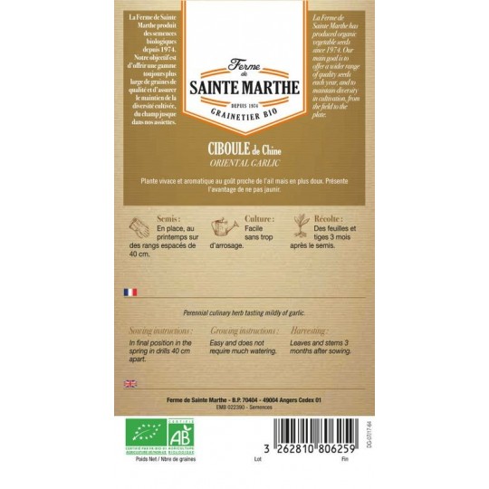 Les semences de Ciboule de Chine AB vendues ici dans des sachets de 200 graines reproductibles.