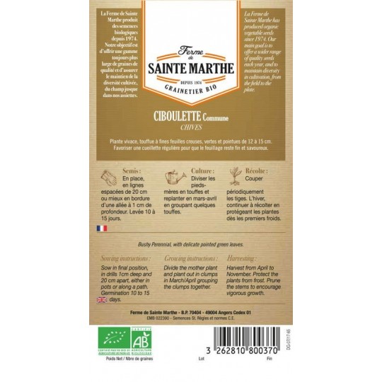 Nouvelles arrivées, les semences de Ciboulette Commune AB.