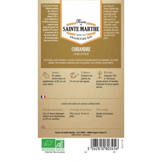 Le sachet de 200 graines de Coriandre AB désormais disponible sur Laboutique420.com.