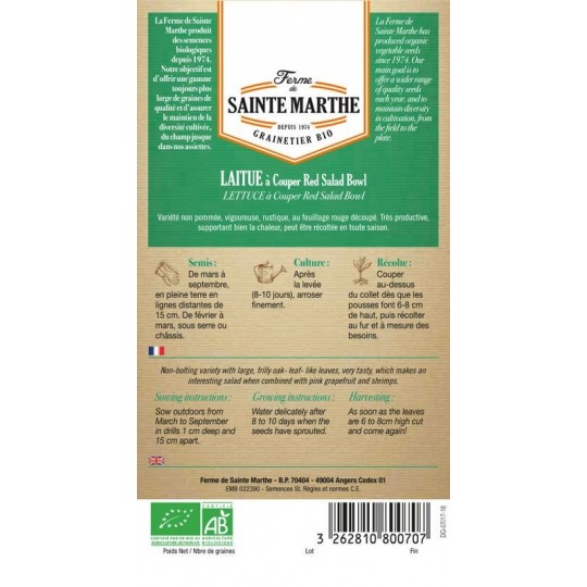 Ces graines peuvent être mise en culture du printemps à la fin de l'été.