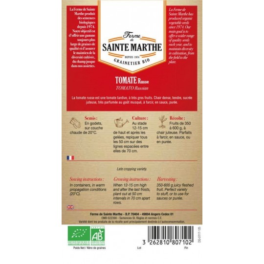 La Tomate russe, une des meilleures qualité de Tomate, ses fruits peuvent atteindre jusqu' a 1kg pièce.