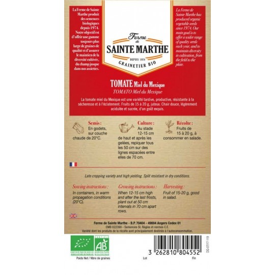 Graines de Tomate Miel du Mexique AB, comme son nom nous l'indique cette variété nous vient d'Amérique Latine.