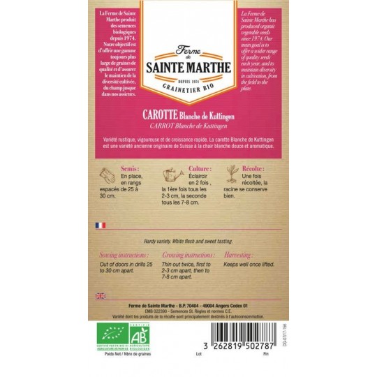 1500 graines Bio de Carotte Blanche de Kuttingen par sachet.